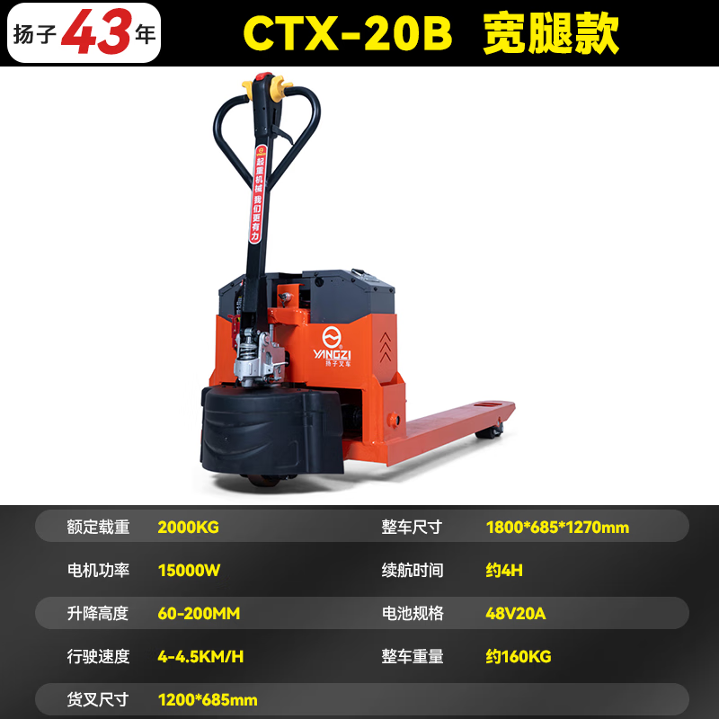 揚(yáng)子半電動(dòng)搬運(yùn)車CTX,電動(dòng)行走強(qiáng)勁載重,永磁無刷電機(jī)/高品質(zhì)油缸/鉛酸鋰電可選