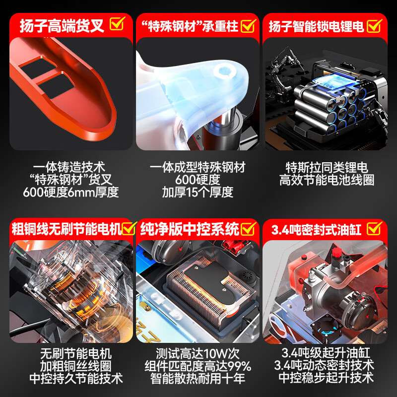 人體工程學控制手柄,全新升級加大加厚鋼材,揚子自研品牌鋰電池