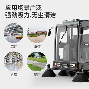 揚(yáng)子S12電動(dòng)掃地車(chē)配備雙吸風(fēng)電機(jī),采用過(guò)載欠壓保護(hù)裝置,使用更加安全,掃地車(chē)不僅配備了自主研發(fā)的邊刷電機(jī),而且使用聚氨酯實(shí)心胎和大容量的垃圾箱,配件品質(zhì)高,使用性能好。S12電動(dòng)掃地車(chē)配備了吸塵濾芯,避免了掃地車(chē)設(shè)備在操作過(guò)程中的清掃遺漏問(wèn)題,實(shí)現(xiàn)了電動(dòng)振塵;全封閉的駕駛倉(cāng),實(shí)現(xiàn)了防雨防塵,滿足在戶外道路和公園等場(chǎng)所的使用需求。
