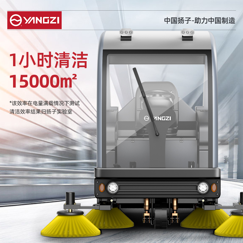 揚子掃地機YZ-S9,中大型廠區力薦,一機解決清潔難題,免維護電池/減震緩沖裝置/防撞自動復位/全景駕駛室/邊刷耐磨材質/磁鋼吸風電機
