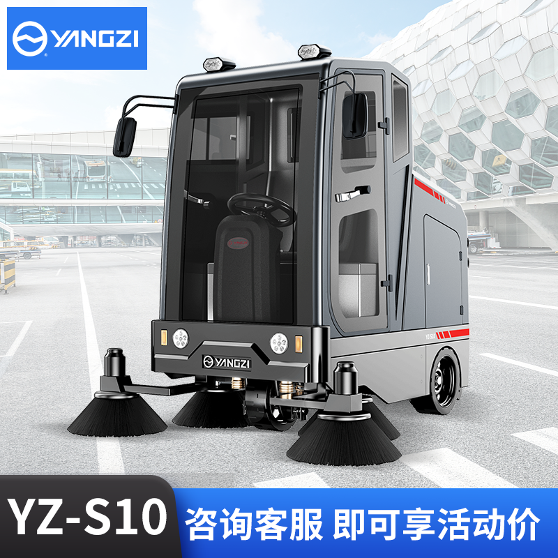 揚子S10駕駛式掃地機方向盤操作更加靈活方便,配備了舒適座椅;腳剎和警示燈設計提升了設備的操作安全性能;S10駕駛式掃地機采用全封閉設計,更適合在戶外使用;一次充電能夠實現超長續航,避免了使用過程中反復充電的問題,噴霧設計解決了清掃過程中粉塵過大的問題。