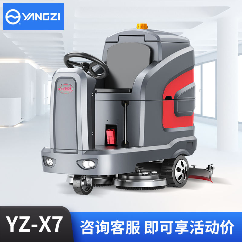 揚子X7駕駛式洗地機的清洗操作面板一目了然,操作更加簡單快捷;配備了橡膠大滾輪,摩擦力更大,避免了設備在操作過程中打滑的問題,駕駛更加安全。X7駕駛式洗地機使用鋁鑄吸水扒,耐高壓抗撞擊能力更強,設備可以實現180°旋轉,設備吸污效果更好;百潔墊使用進口尼龍絲,高密度用料多;耐磨損的同時使用壽命更長,而且不易變形,清洗效果好。